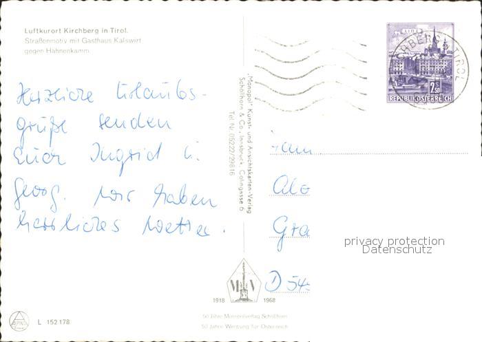 72034294 alte Postkarte Kirchberg Tirol Strassenansicht Gasthaus Kalswirt Hahnenkamm postalisch gelaufen Erhaltung siehe scans KatCode: 11390335070409
