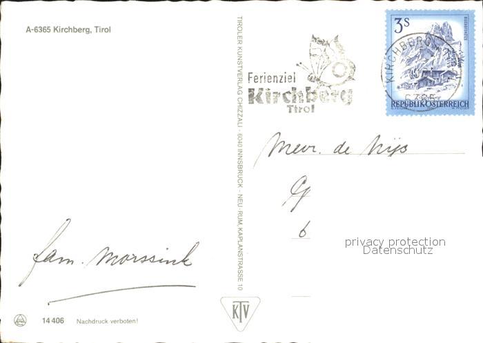 72097503 alte Postkarte Kirchberg Tirol Totalansicht Landschaftspanorama Ortsblick postalisch gelaufen Erhaltung siehe scans KatCode: 11390335070409