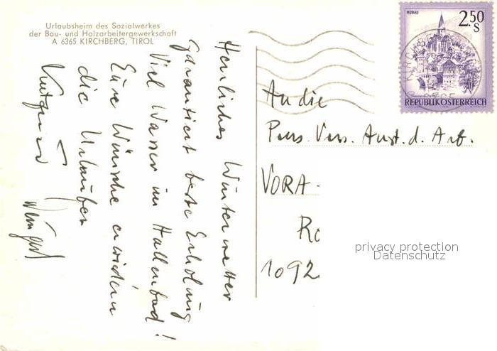 72756301 alte Postkarte Kirchberg Tirol Urlaubsheim des Sozialwerkes der Bau- und Holzarbeitergewerkschaft postalisch gelaufen Erhaltung siehe scans [LiesaD40] KatCode: 11390335070409