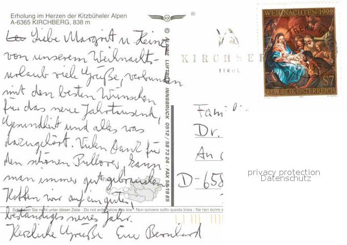 72802739 alte Postkarte Kirchberg Tirol Wintersportplatz Kitzbueheler Alpen Fliegeraufnahme postalisch gelaufen Erhaltung siehe scans [FriedD77] KatCode: 11390335070409