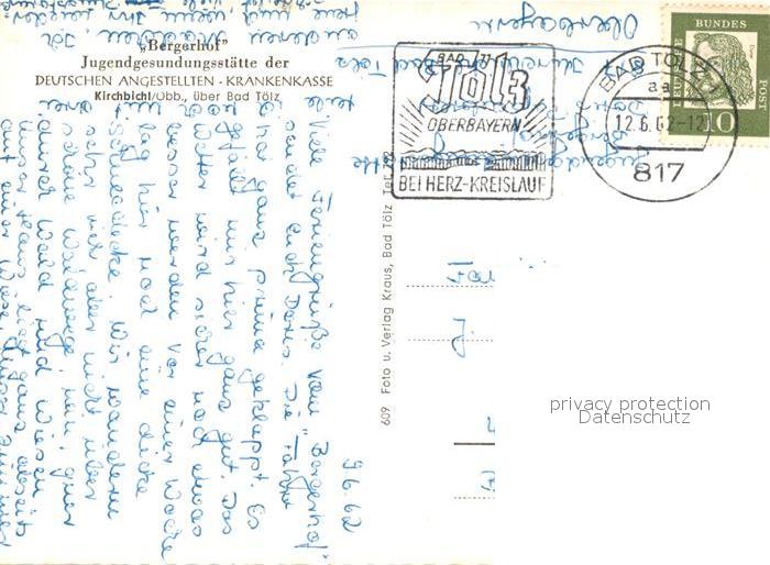 73333484 alte Postkarte Kirchbichl Bad Toelz Bergerhof Jugendgesundheitsstaette der Deutschen Angestellten Krankenkasse postalisch gelaufen Erhaltung siehe scans [LiesaD40] KatCode: 11110009173112