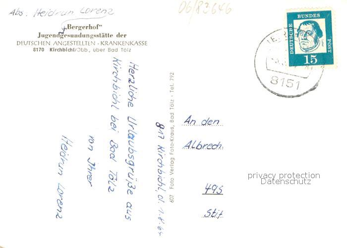 73644391 alte Postkarte Kirchbichl Bad Toelz Bergerhof Jugendgesundungsstaette der DAK postalisch gelaufen Erhaltung siehe scans [FriedD77] KatCode: 11110009173112