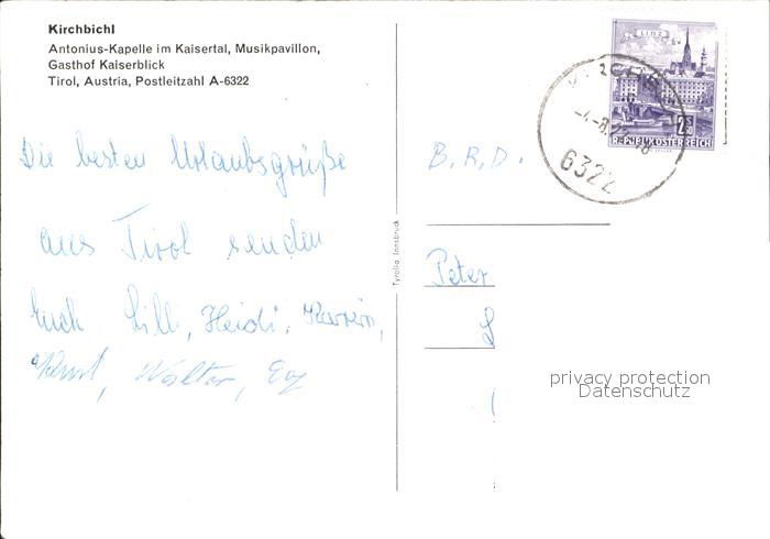 72079936 alte Postkarte Kirchbichl Tirol Antonius- Kapelle Musikpavillon Gasthof Kaiserblick postalisch gelaufen Erhaltung siehe scans KatCode: 11390335070511