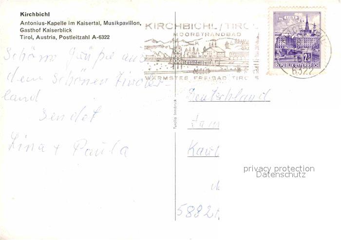 72641789 alte Postkarte Kirchbichl Tirol Antonius Kapelle Musikpavillon postalisch gelaufen Erhaltung siehe scans [KathaD79] KatCode: 11390335070511