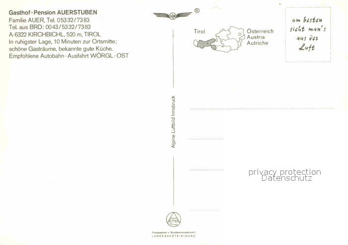 72775527 Kirchbichl Tirol Gasthof Pension Auerstuben postalisch nicht gelaufen Erhaltung siehe scans [KathaD81] KatCode: 11390335070511