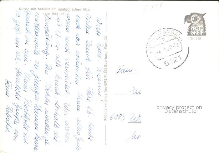 72104787 alte Postkarte Kirchbrombach Kirche Altar Ortsblick postalisch gelaufen Erhaltung siehe scans KatCode: 11110006437005