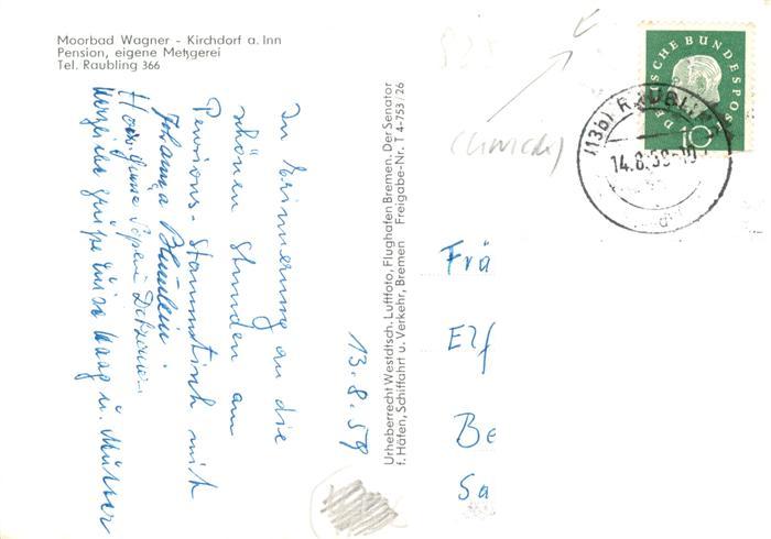 73960233 alte Postkarte Kirchdorf Inn Bayern Moorbad Wagner Pension postalisch gelaufen Fliegeraufnahme Erhaltung siehe scans [FriedD77] KatCode: 11110009277128