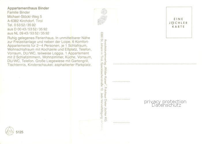 73363384 Kirchdorf Tirol Appartementhaus Binder Kaisergebirge Kirche Tennisplatz postalisch nicht gelaufen Erhaltung siehe scans [FriedD77] KatCode: 11390335070410