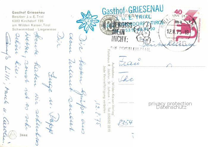 72633419 alte Postkarte Kirchdorf Tirol Gasthof Griesenau postalisch gelaufen Erhaltung siehe scans [FriedD77] KatCode: 11390335070410