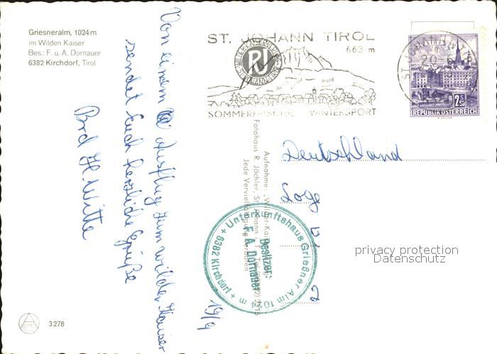 72496676 alte Postkarte Kirchdorf Tirol Griesneralm Kaisergebirge postalisch gelaufen Erhaltung siehe scans KatCode: 11390335070410