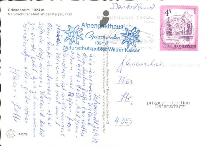 72240325 alte Postkarte Kirchdorf Tirol Griesneralm Naturschutzgebiet Alpenpanorama postalisch gelaufen Erhaltung siehe scans KatCode: 11390335070410