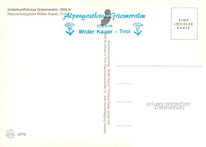 73157966 Kirchdorf Tirol Griesneralm Unterkunftshaus Naturschutzgebiet Wilder Kaiser Kaisergebirge postalisch nicht gelaufen Erhaltung siehe scans [FriedD77] KatCode: 11390335070410