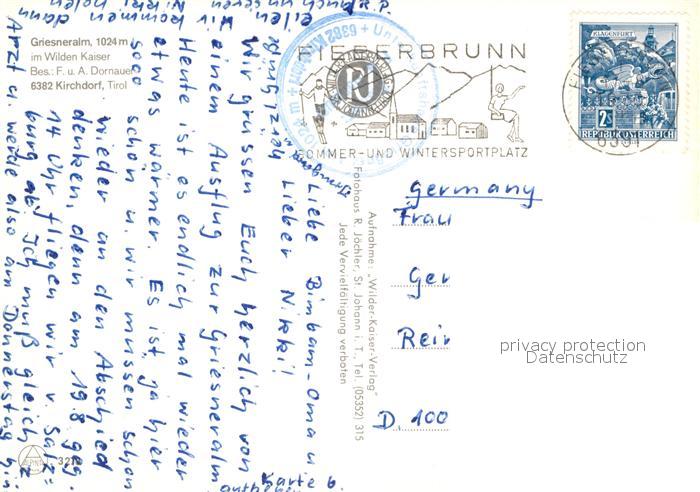 73028956 alte Postkarte Kirchdorf Tirol Griesneralm Wilder Kaiser postalisch gelaufen Erhaltung siehe scans [PaolaD17] KatCode: 11390335070410