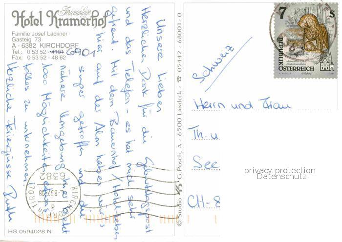 72845216 alte Postkarte Kirchdorf Tirol Hotel Kramerhof postalisch gelaufen Erhaltung siehe scans [PaolaD17] KatCode: 11390335070410