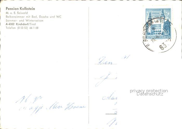 72013072 alte Postkarte Kirchdorf Tirol Pension Kalkstein postalisch gelaufen Erhaltung siehe scans KatCode: 11390335070410