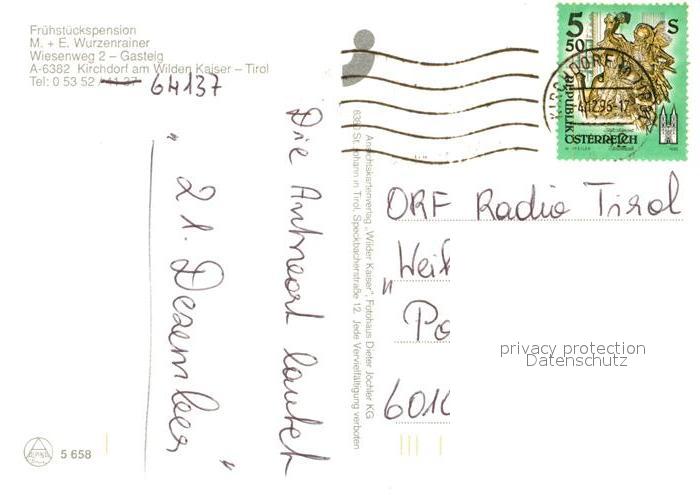 73164755 alte Postkarte Kirchdorf Tirol Pension Wurzenrainer Winterlandschaft postalisch gelaufen Erhaltung siehe scans [KathaD81] KatCode: 11390335070410