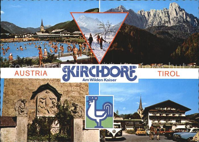 72445853 Kirchdorf Tirol Schwimmbad Kaisergebirge Pfarrkirche Eingang Parkplatz postalisch nicht gelaufen Erhaltung siehe scans KatCode: 11390335070410