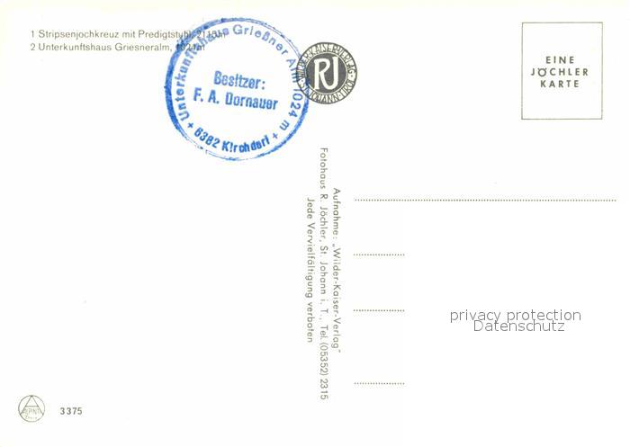 72820952 Kirchdorf Tirol Stripsenjochkreuz mit Predigtstuhl Unterkunftshaus Griesneralm postalisch nicht gelaufen Erhaltung siehe scans [FriedD77] KatCode: 11390335070410