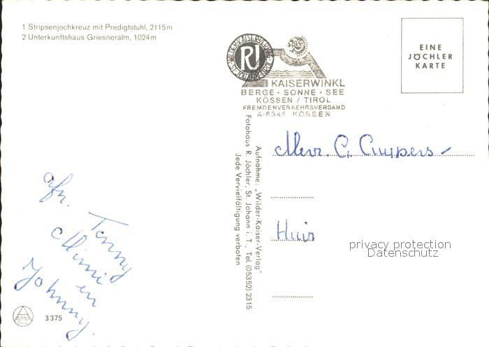 72274808 Kirchdorf Tirol Stripsenjochkreuz Predigstuhl Griesneralm Unterkuftshaus postalisch nicht gelaufen Erhaltung siehe scans KatCode: 11390335070410