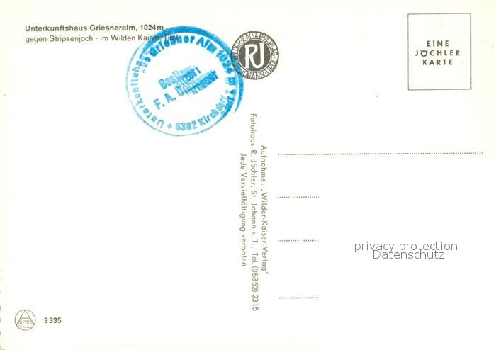 73119904 Kirchdorf Tirol Unterkunftshaus Griesneralm postalisch nicht gelaufen Erhaltung siehe scans [NatalD47] KatCode: 11390335070410