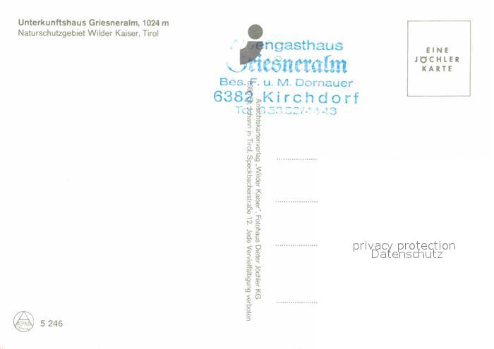 72913936 Kirchdorf Tirol Unterkunftshaus Griesneralm Wilder Kaiser postalisch nicht gelaufen Erhaltung siehe scans [KathaD81] KatCode: 11390335070410