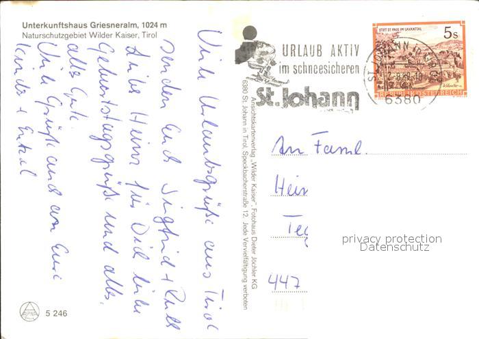 71935302 alte Postkarte Kirchdorf Tirol Unterkunftshaus Griesneralm Wilder Kaiser postalisch gelaufen Erhaltung siehe scans KatCode: 11390335070410