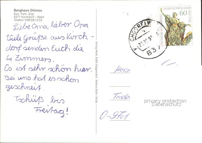 72366009 alte Postkarte Kirchdorf Wald Berghaus Duernau postalisch gelaufen Erhaltung siehe scans KatCode: 11110009276127