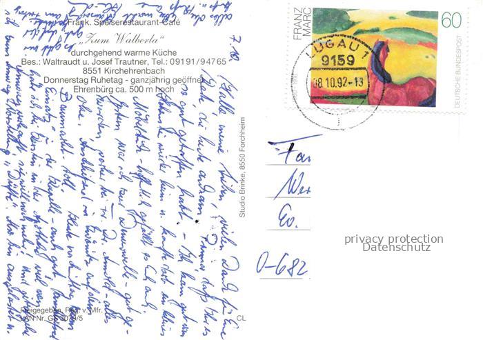 74042716 alte Postkarte Kirchehrenbach Forchheim Restaurant Café zum Walberla Terrasse Kinderspielplatz postalisch gelaufen Erhaltung siehe scans [FriedD77] KatCode: 11110009474143