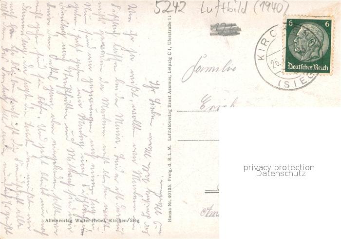73706805 alte Postkarte Kirchen Sieg Fliegeraufnahme Blick auf Druidenstein postalisch gelaufen Erhaltung siehe scans [LiesaD40] KatCode: 11110007132501