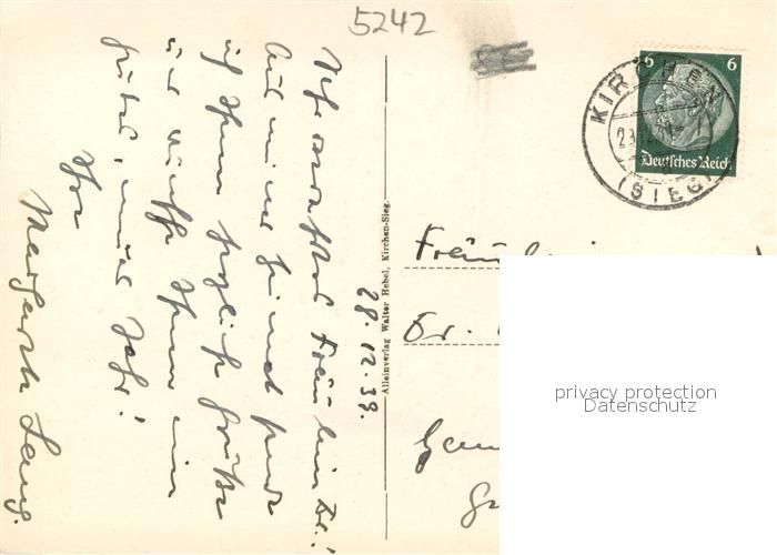 73706806 alte Postkarte Kirchen Sieg Stadtansicht m Alexanderhoehe postalisch gelaufen Erhaltung siehe scans [LiesaD40] KatCode: 11110007132501