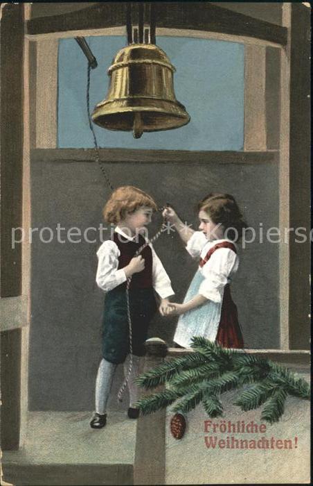alte Postkarte Kirchenglocke Churchbell Cloche Eglise Kinder Tannenzapfen Weihnachten postalisch gelaufen Erhaltung siehe scans