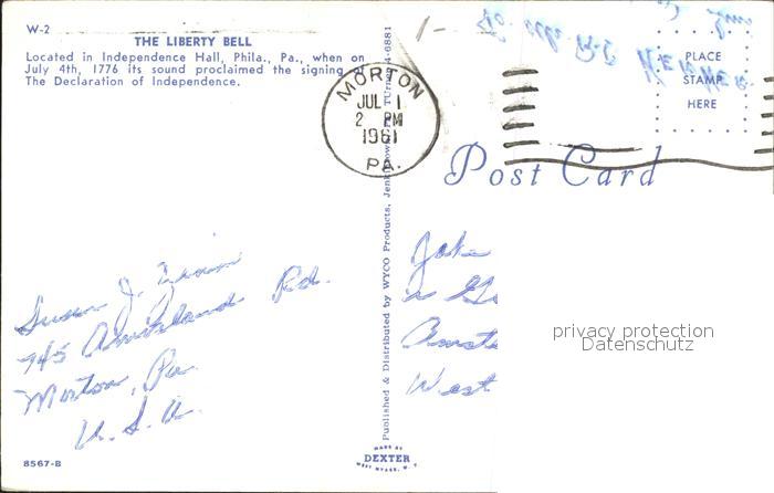 72292612 Kirchenglocke Churchbell Cloche Eglise Liberty Bell Independence Hall Philadelphia KatCode 22140000001900