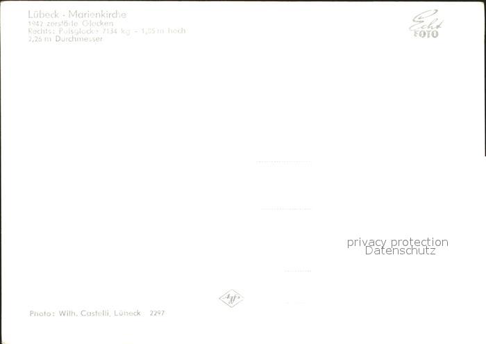 Kirchenglocke Churchbell Cloche Eglise LuebecK Marienkirche Zerstoerte Glocken 1942 postalisch nicht gelaufen Erhaltung siehe scans