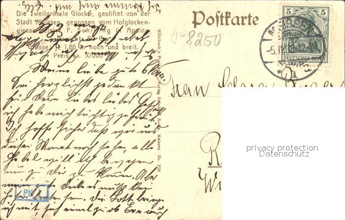 alte Postkarte Kirchenglocke Churchbell Cloche Eglise Meissen Dom postalisch gelaufen Erhaltung siehe scans