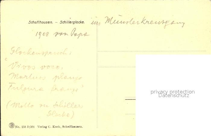 Kirchenglocke Churchbell Cloche Eglise Schaffhausen Schillerglocke postalisch nicht gelaufen Erhaltung siehe scans