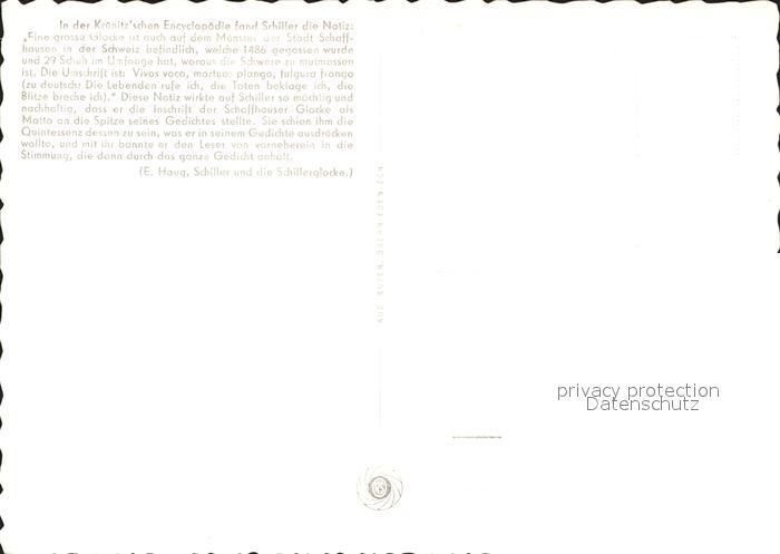 Kirchenglocke Churchbell Cloche Eglise Schaffhausen Schillerglocke postalisch nicht gelaufen Erhaltung siehe scans
