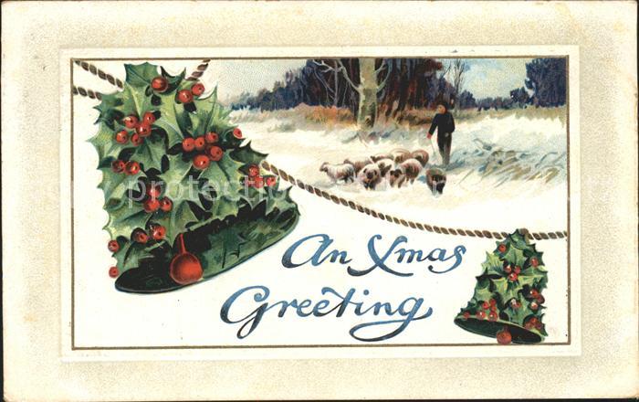 11927709 Kirchenglocke Churchbell Cloche Eglise Stechpalme Weihnachten Hirte Schafe Litho KatCode 22140000001900