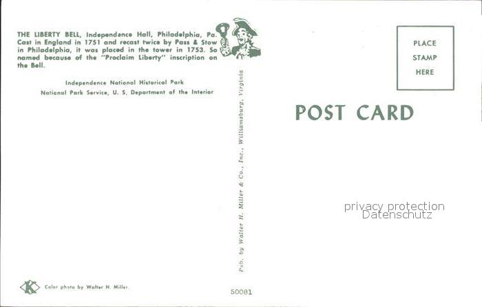 Kirchenglocke Churchbell Cloche Eglise The Liberty Bell Independance Hall Philadelphia postalisch nicht gelaufen Erhaltung siehe scans