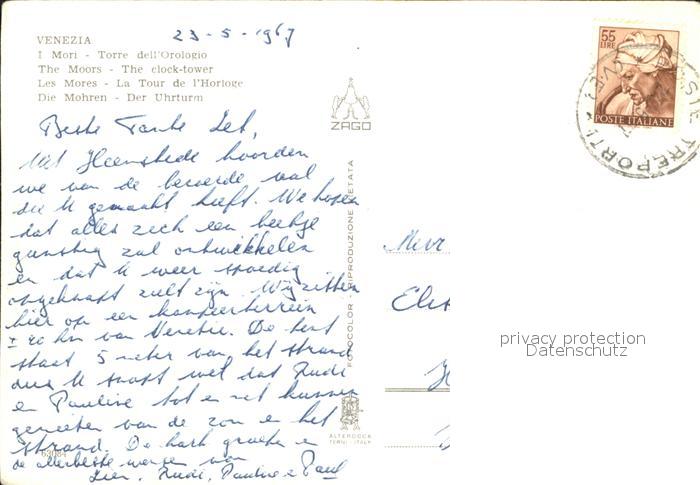 alte Postkarte Kirchenglocke Churchbell Cloche Eglise Venezia I Mori Torre dell’Orologio postalisch gelaufen Erhaltung siehe scans