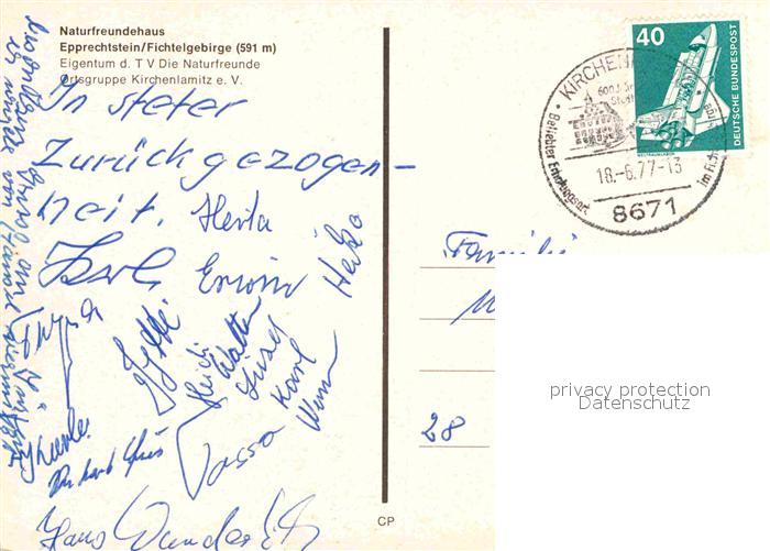 72659542 alte Postkarte Kirchenlamitz Naturfreundehaus Epprechtstein postalisch gelaufen Erhaltung siehe scans [NatalD47] KatCode: 11110009479129
