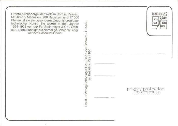 Kirchenorgel Dom Passau postalisch nicht gelaufen Erhaltung siehe scans