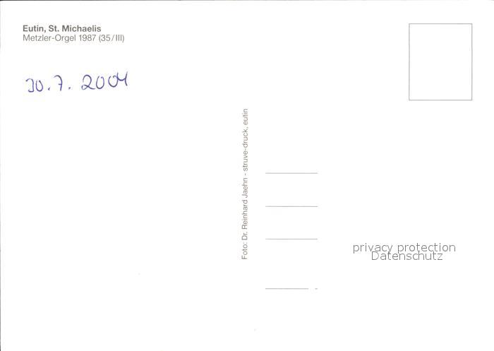 Kirchenorgel Eutin St. Michaelis Metzler-Orgel postalisch nicht gelaufen Erhaltung siehe scans