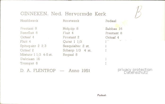 Kirchenorgel Ginneken Hervormde Kerk postalisch nicht gelaufen Werbekarte (keine Postkarte) Erhaltung siehe scans