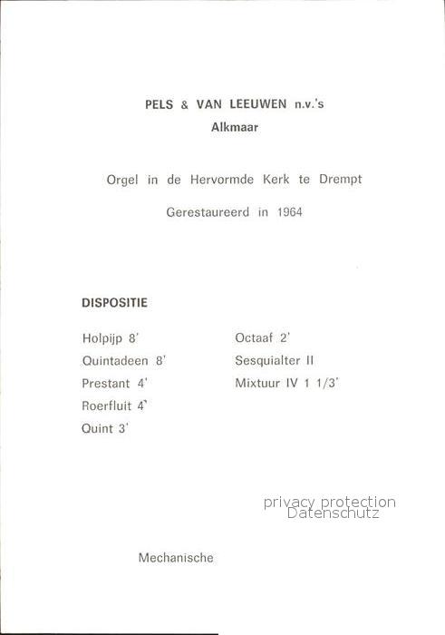 Kirchenorgel Hervormde Kerk Drempt postalisch nicht gelaufen Keine Postkarte (siehe scan) Erhaltung siehe scans