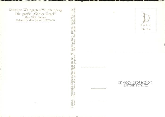 42594040 Kirchenorgel Münster Weingarten Württemberg Gabler-Orgel KatCode 22560000002200