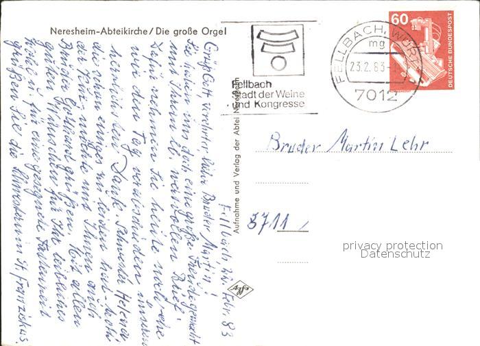 alte Postkarte Kirchenorgel Neresheim-Abteikirche postalisch gelaufen Erhaltung siehe scans