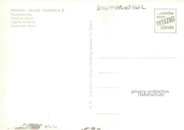74050538 Kirchenorgel Organ Orgue Muenchen Monaco Theatiner postalisch nicht gelaufen Erhaltung siehe scans [SanaeD93] KatCode: 22560000002200