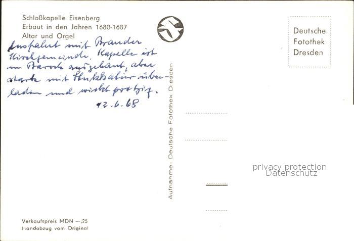 Kirchenorgel Schlosskapelle Eisenberg postalisch nicht gelaufen Erhaltung siehe scans