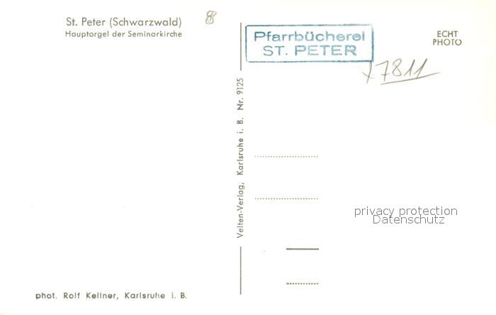 Kirchenorgel St. Peter Schwarzwald Seminarkirche postalisch nicht gelaufen Erhaltung siehe scans [PaolaD17]