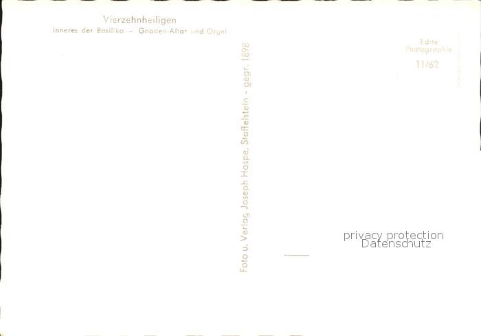 Kirchenorgel Vierzehnheiligen Basilika postalisch nicht gelaufen Erhaltung siehe scans